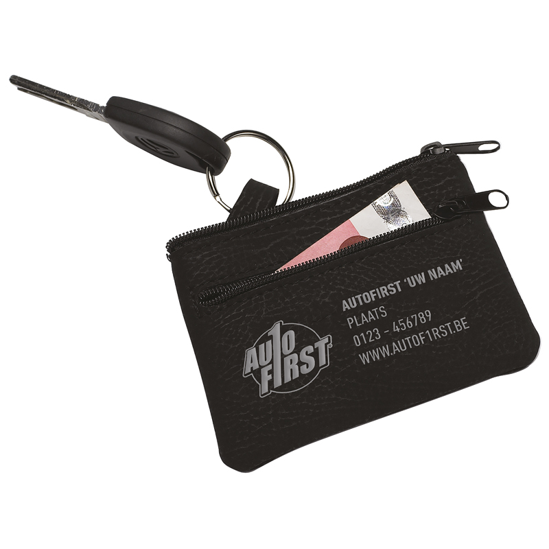Sleuteltasje gemaakt van alcantara en geeft dus een fluweelzachte touch. Leuk als cadeautje, voor aan je sleutelbos, bij aanschaf van een nieuwe auto. Met handig extra ritsvakje aan de voorzijde. Geschikt voor blinddrukken. Prijs exclusief eenmalige clichékosten € 75,-