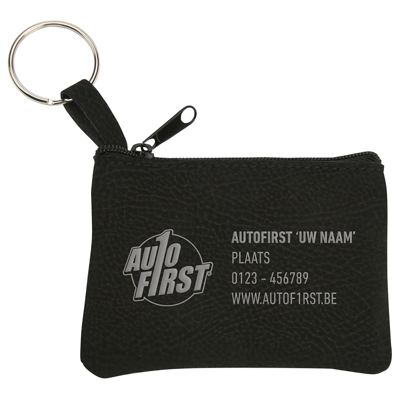 Handig klein portemonneetje voor aan je sleutelbos om je kleingeld en pasjes in op te bergen. Leuk als cadeautje bij een nieuwe auto. Gemaakt van alcantara en geeft dus een fluweelzachte touch. Geschikt voor blinddrukken. Prijs exclusief eenmalige clichékosten € 75,-