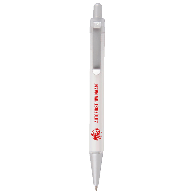 ARTICA kunststof balpen HC Peekay. Kunststof houder, leverbaar in diverse kleuren, mat-verchroomde metalen clip en aluminium-kleurige kunststof drukker en puntstuk. Voorzien van blauwschrijvende plastic langschrijfvulling