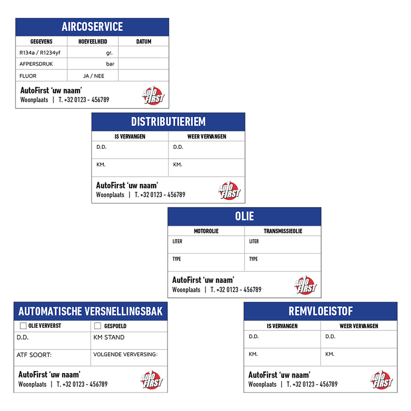 Onderhoudsstickers in uw eigen huisstijl, beschrijfbaar met een normale pen. Bedrukking in full colour. Afmeting sticker: 50x30mm