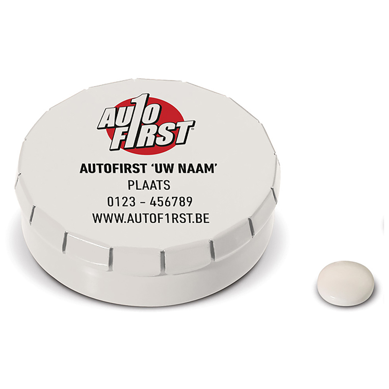 Met één klik is het pepermuntdoosje te openen en met een simpele handbeweging is het doosje te sluiten. Niet suikervrij. Twaalf gram Europese pepermunt.