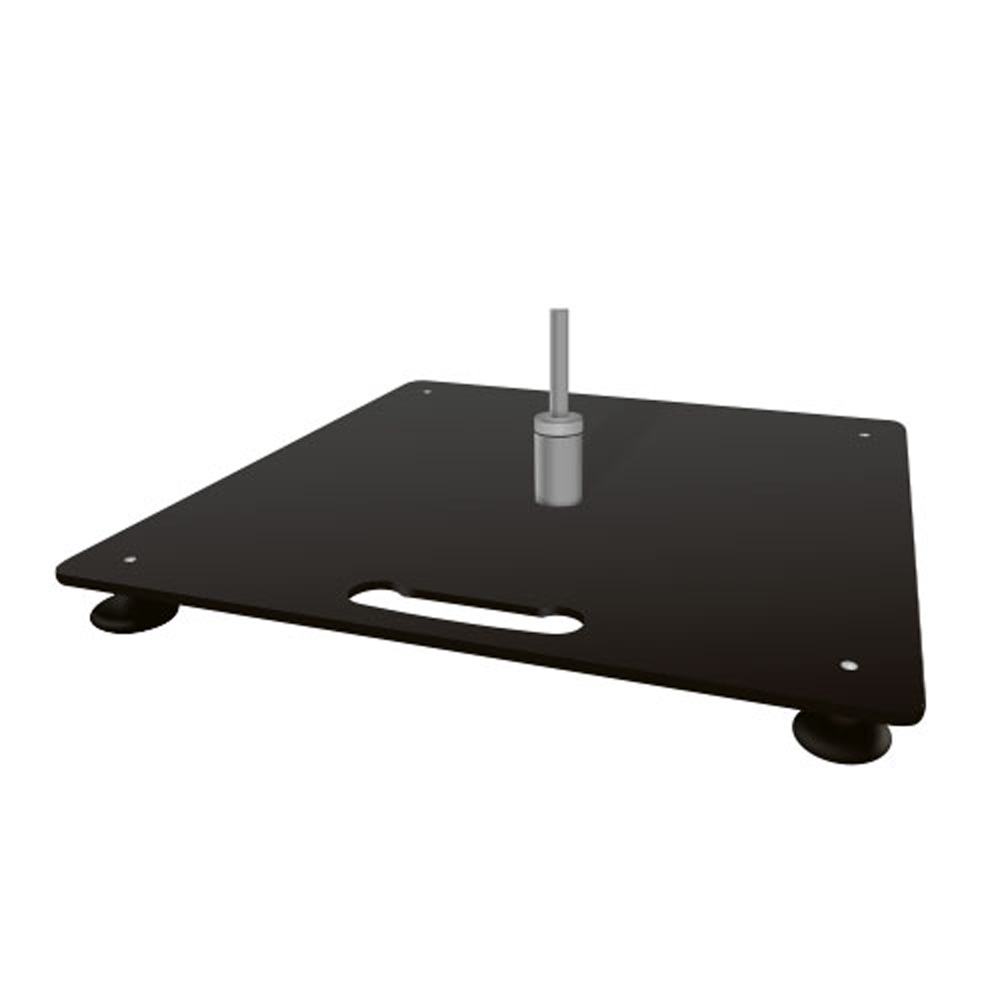 Meest gebruikte beachflagvoet, vereist een vlakke ondergrond. De voet is voorzien van een kogelgelagerd draaimechanisme en is geschikt voor zowel binnen- als buitengebruik. De voet is gemaakt van zwart gepoedercoat staal. Afmeting: 40 x 40 cm. Gewicht: 6 kg.