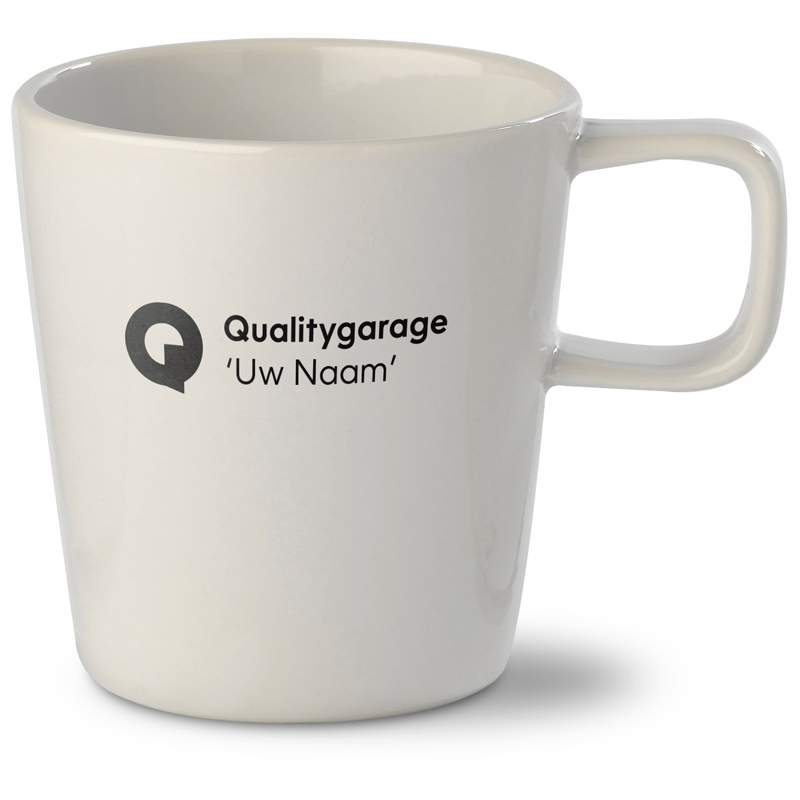 Mok van porselein. Conisch model met subtiel oor en Stapelbaar. Geschikt voor alle koffie automaten.