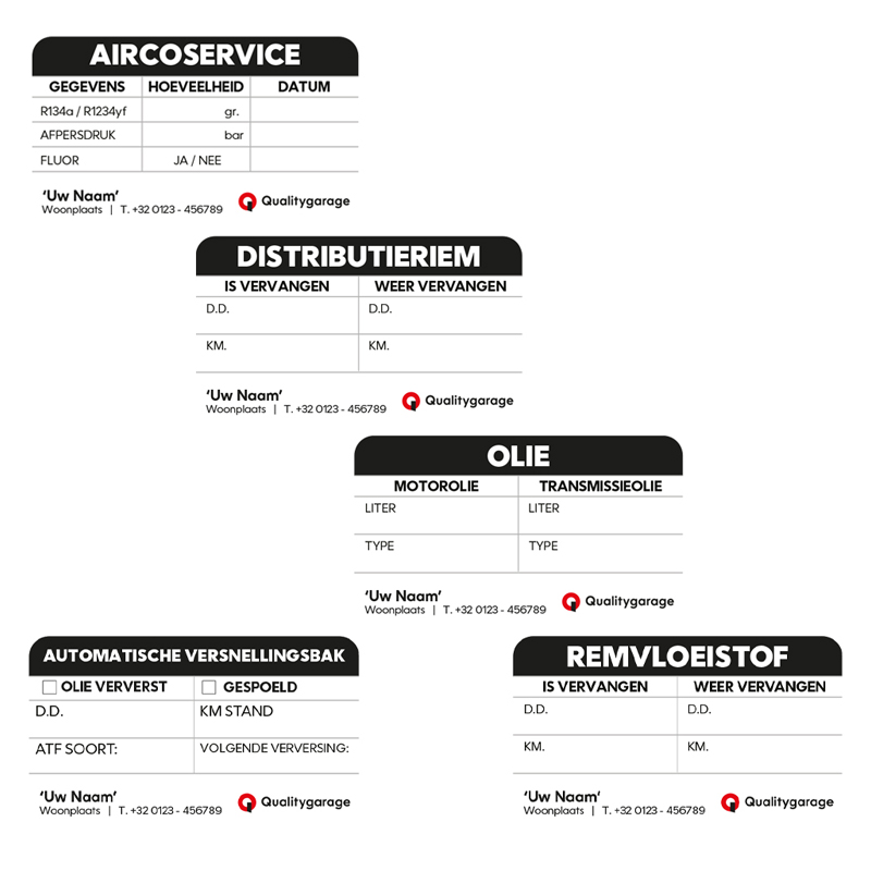 Onderhoudsstickers in uw eigen huisstijl, beschrijfbaar met een normale pen. Bedrukking in full colour. Afmeting sticker: 50x30mm